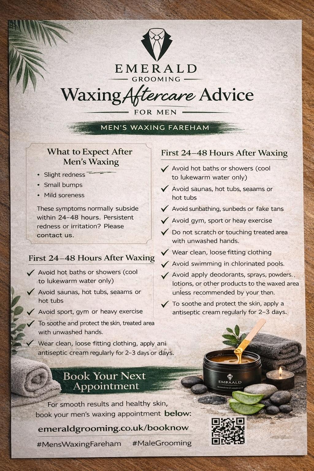 If you’re looking for professional, discreet men’s waxing in Fareham, Emerald Grooming offers private one-to-one appointments designed for comfort and results.
